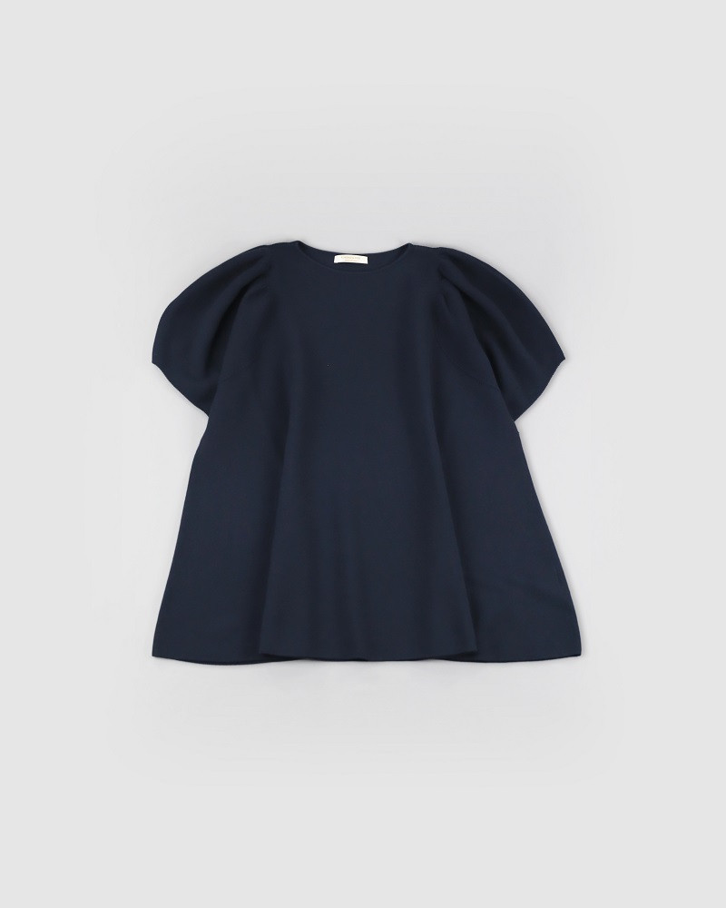 【天然素材/オーガニックコットン】普段使い ゆったり パフスリーブプルオーバー 日本製 Mサイズ ダークネイビー[5839-9885]