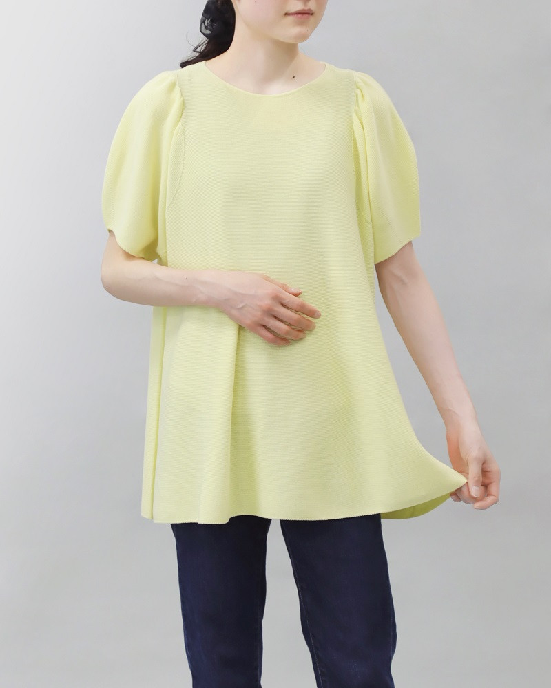 胸元とバックスタイルのギャザーが首周りをすっきりお顔を華やかに見せ、控えめな袖口のバルーンが可愛く上品な印象を与える、大人の女性にぜひ着ていただきたいアイテムです。16.5マイクロンの最上級の極細ウールを使用したこのニットは、しなやかで非常に暖かくカシミヤに引けを取らない風合いを持ちます。3Dニットならではの縫い代のないこの製品は、動きを妨げることがなく、ごわつかず、すっきりとしたシルエットで肌になじむような着心地を楽しめます。品質の良さと上品なシルエットが着ているだけで幸せにしてくれるそんな1着です。