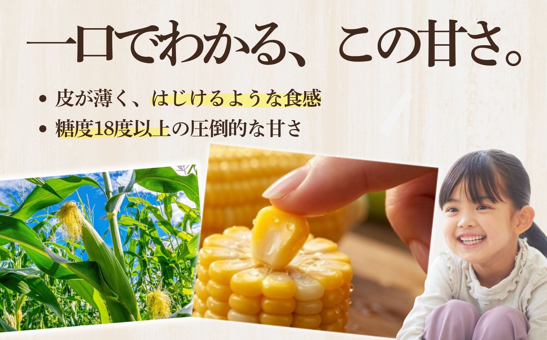 皮が薄く、甘みが飛び出してくるような食感は、まさにフルーツコーンと呼ばれるほど。