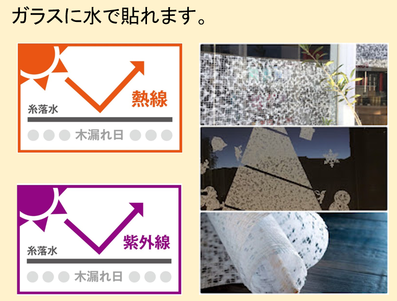 ガラスに水で簡単に貼れるこもれび和紙。