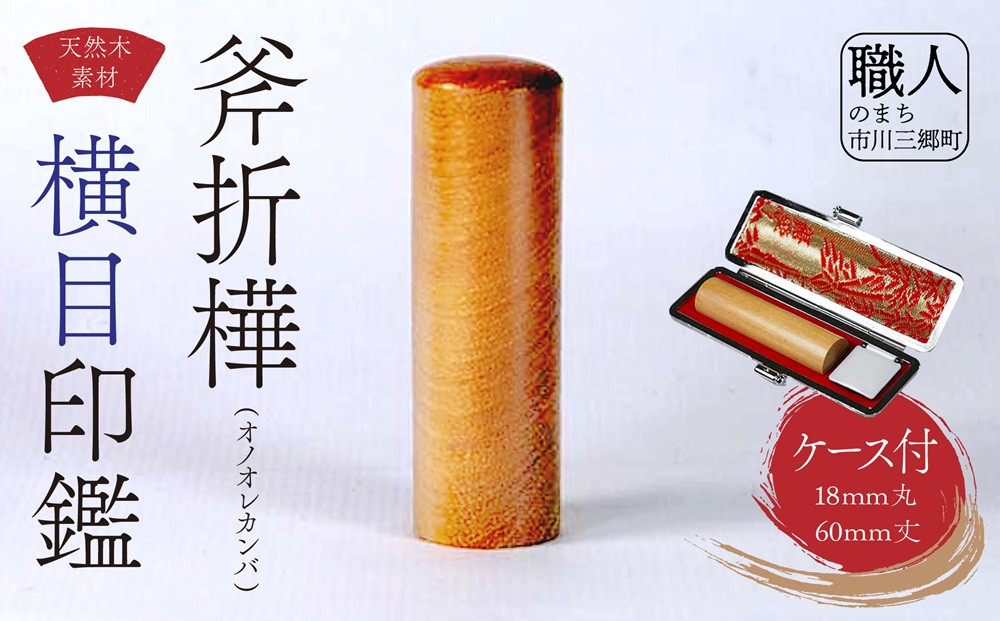 福徳開運印鑑【実印または銀行印】斧折樺(オノオレカンバ)横目印鑑 18㎜丸60㎜丈 牛革モミケース入り[5839-2091]