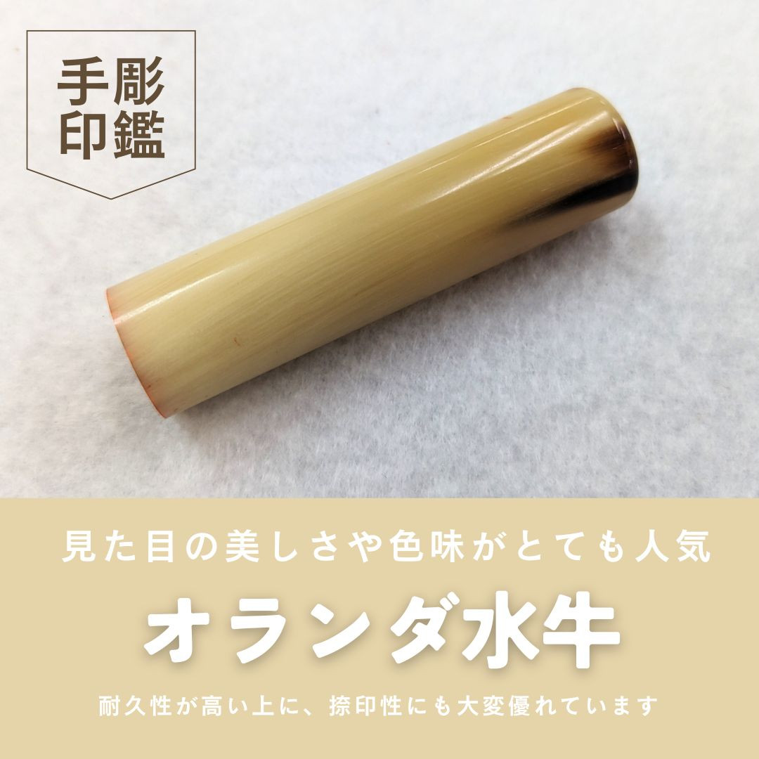 オランダ水牛は、天然素材ならではの高級感があり、硬く、長期間使用しても劣化しにくい印材です。