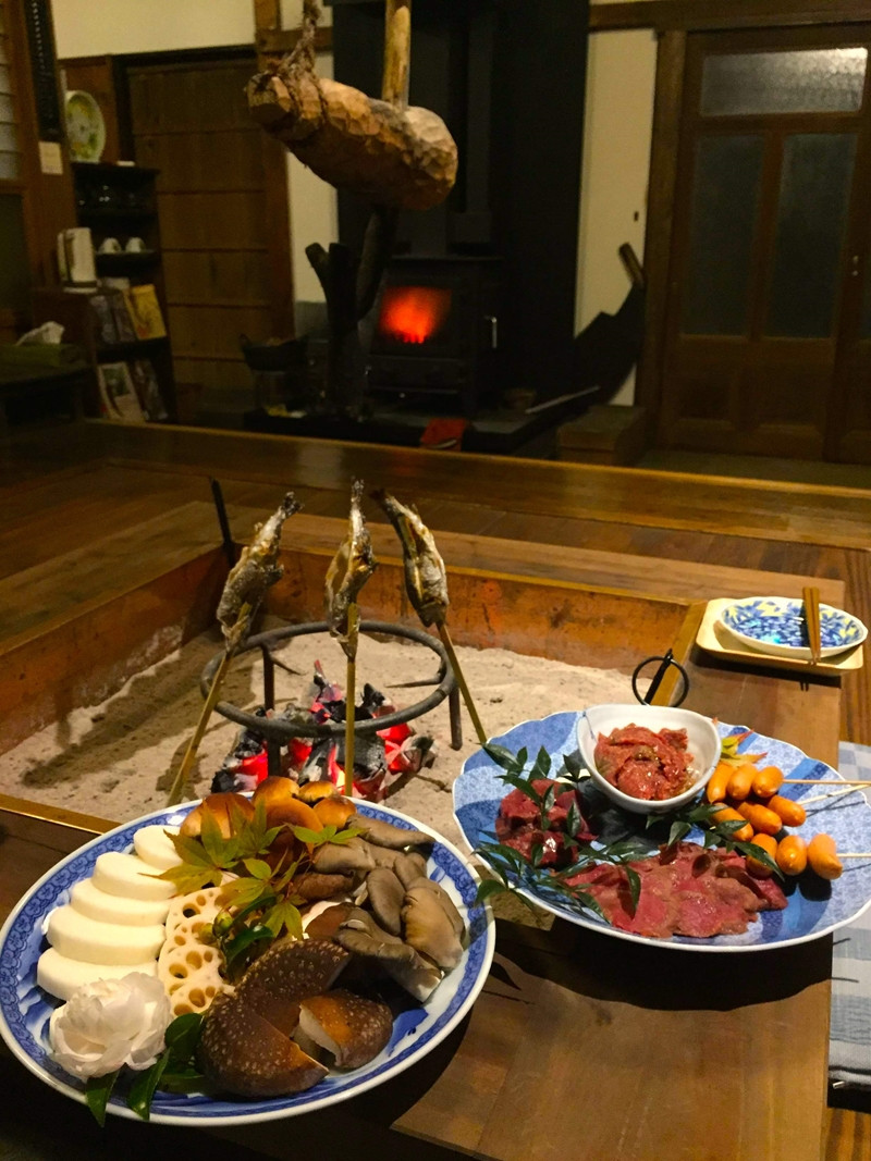 町内にある古民家を改修した一棟貸しの宿であり、オーナーが自ら町内で採集した山菜などが食事として提供されるため