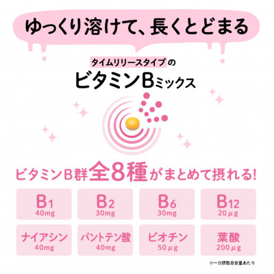 タイムリリース処方で、ゆっくり溶けて長くとどまる! 8種のビタミンB群を効率よく摂ろう!