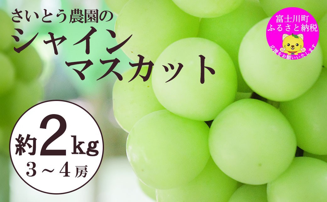 産地直送!フルーツ王国山梨から~最も美味しい旬の時期に発送します~ 【2026年発送分】さいとうさん家のシャインマスカット 3~4房 (約2kg) 8月下旬以降発送 シャイン マスカット 葡萄 ブドウ ぶどう くだもの フルーツ 産地直送 山梨 やまなし 先行予約 富士川町