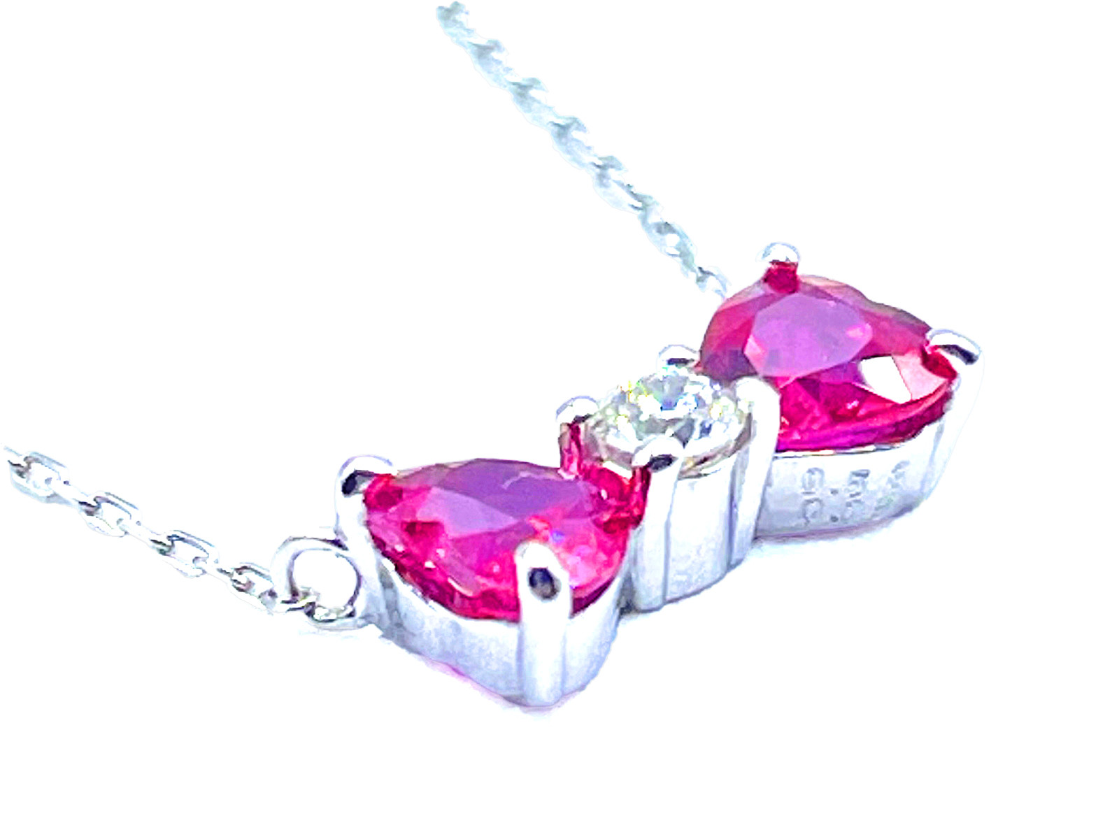 上質なルビーのハートシェイプカットを2石使用したリボンペンダント