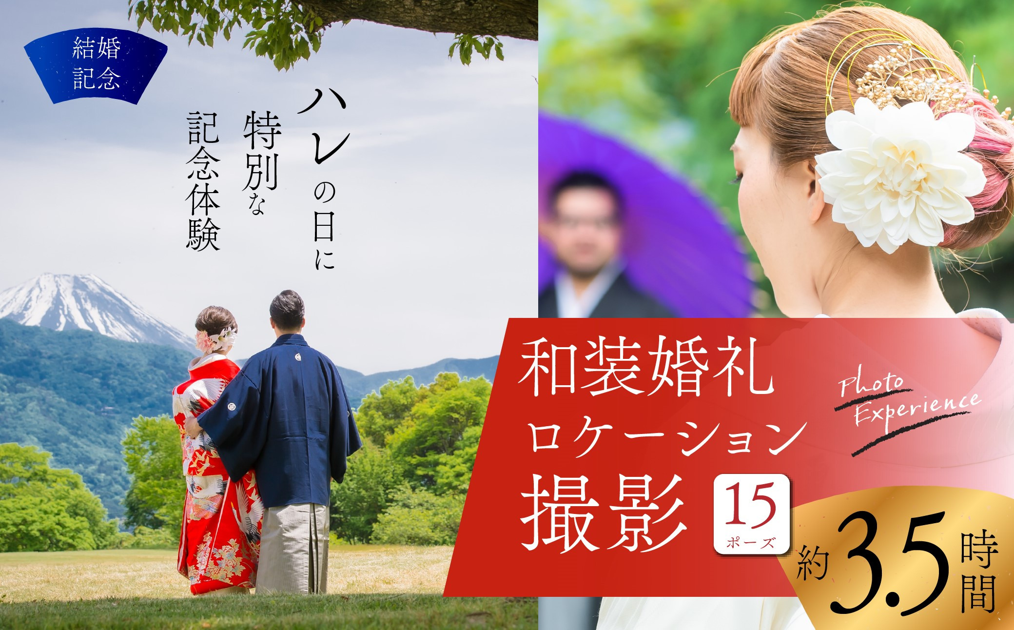 関連キーワード 和装ロケーション撮影 記念日撮影 結婚記念 白無垢 打掛 紋付袴 婚礼衣装 記念日きもの メモリアルフォト 日本の伝統 じゅぱんぐ