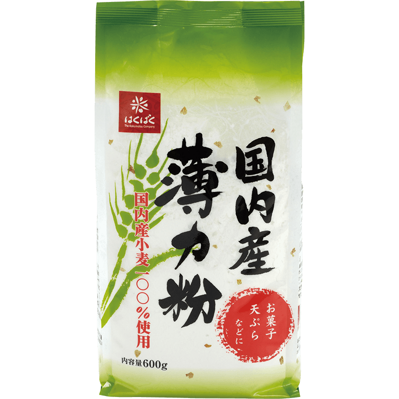 国内産小麦のみを使用した薄力粉です。漂白剤や添加物が入っていないので自然な色をした小麦粉です。粒度が細いのが特徴で、きめの細かいスポンジケーキやふっくらとしたボリュームのあるお菓子が焼きあがります。また、国内産薄力粉は外国産のものに比べて澱粉質が柔らかいため天ぷらがサクッとお菓子がソフトに仕上がります。自然の味わい、風味豊かな香りをお楽しみください。
