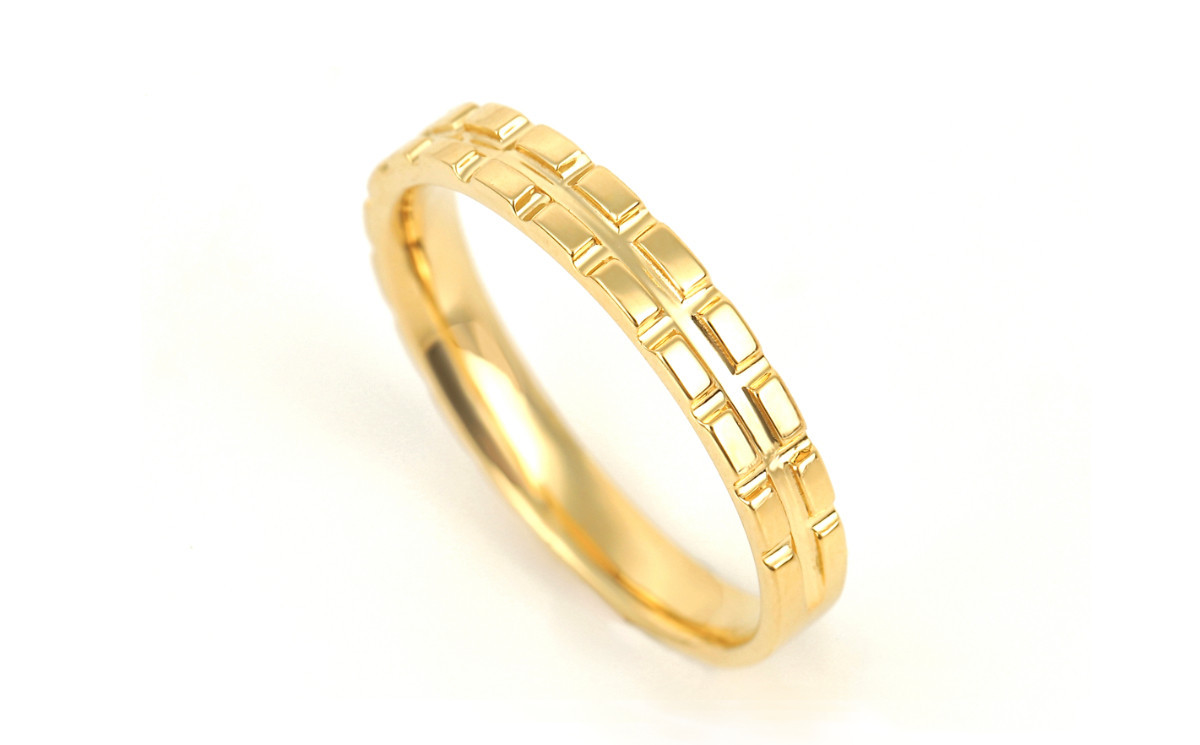 たくさんのブロックのひとつひとつがキラキラと輝きます K18 地金キャタピラーデザインリング R3938-Y【サイズ:8号~20号(0.5号刻み対応可)】 指輪 リング ジュエリー 贈り物 ギフト プレゼント