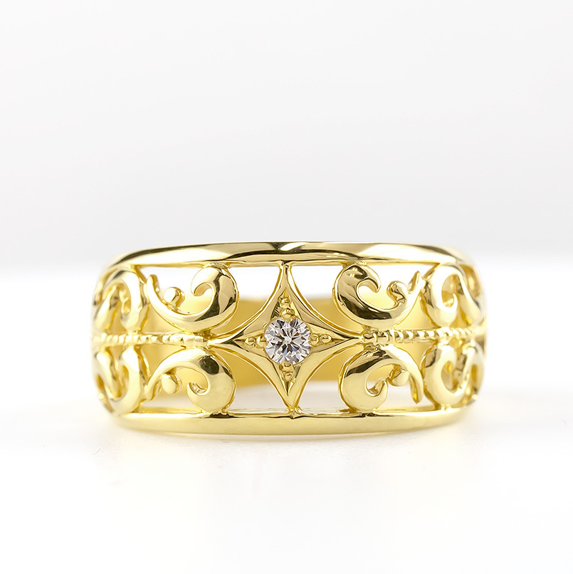 純金 リング 指輪 24金 ダイヤモンド ゴールド k24 24k ダイヤ 0.07ct アラベスク 唐草 透かし プレゼント ギフト 贈り物 ジュエリー シンプル 山梨県 昭和町 管理番号211217100dk24m SWAA016