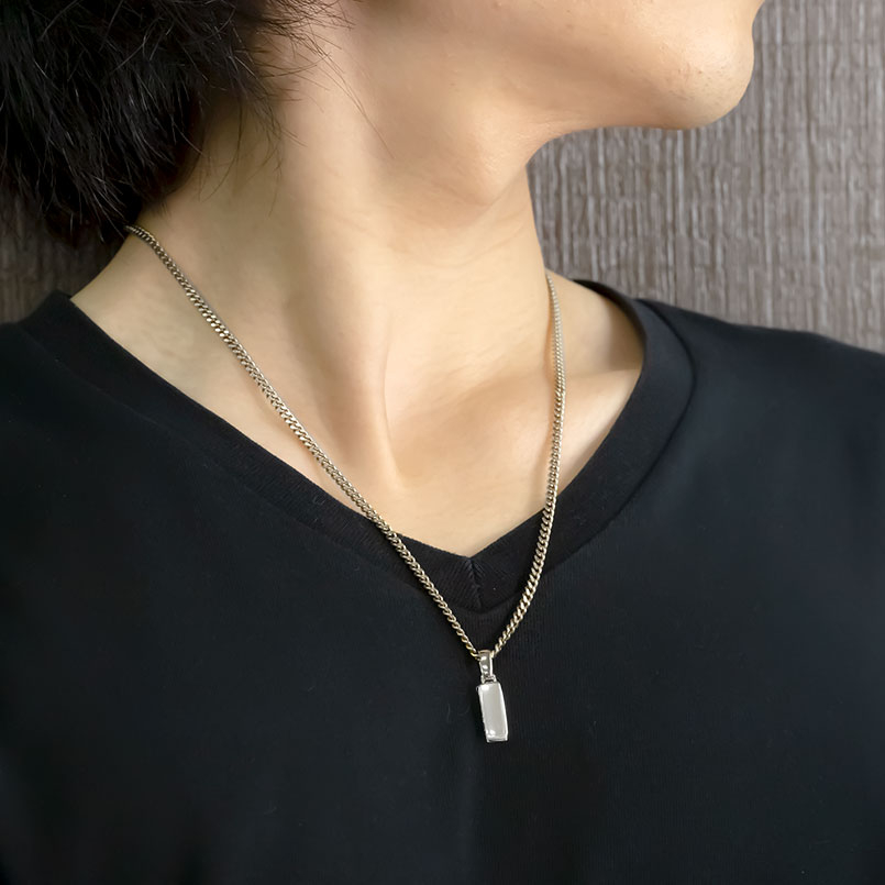 シンプルでソリッドなペンダントにさりげなくダイヤモンドが光る。