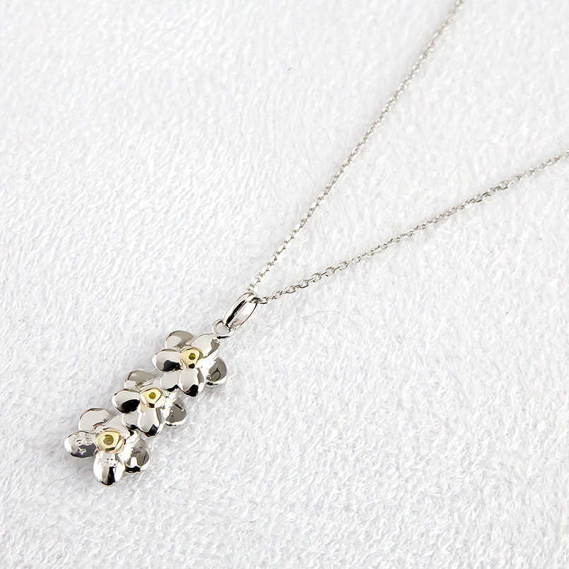 Pt999のほぼ純粋なプラチナと18金を組み合わせた花モチーフネックレス。
