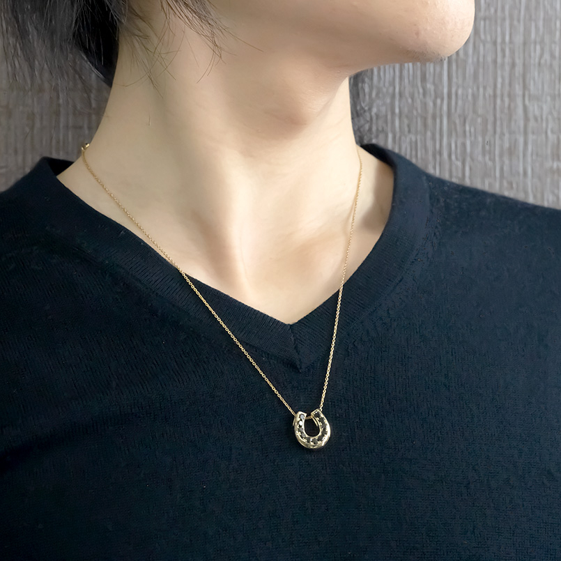 端正なフォルムと重厚感のある馬蹄モチーフのペンダント。