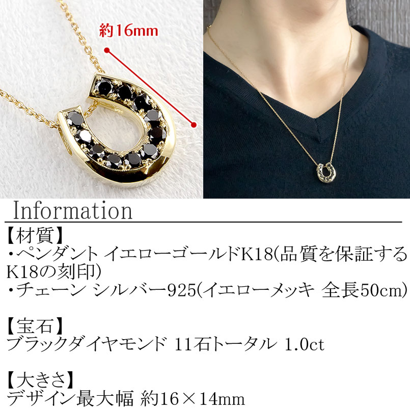 18金 ペンダントトップ 馬蹄 ブラックダイヤモンド 1.0ct ネックレス ホースシュー ブラックダイヤ 蹄鉄 シンプル ジュエリー 山梨県 昭和町 送料無料 管理番号230227102bkym SWAA095