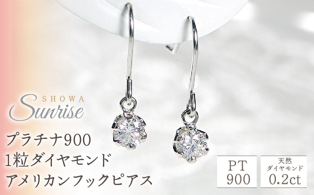 【0.2ct】プラチナ900 1粒ダイヤモンド アメリカンフックピアス CSP00032 SWAV003