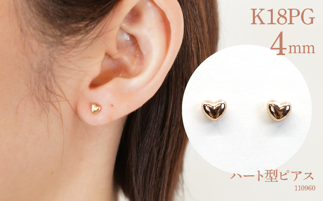 K18ピンクゴールド ハート型ピアス 4ミリ 110960 SWAE002
