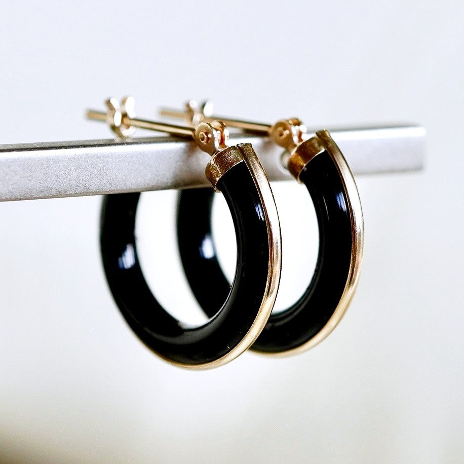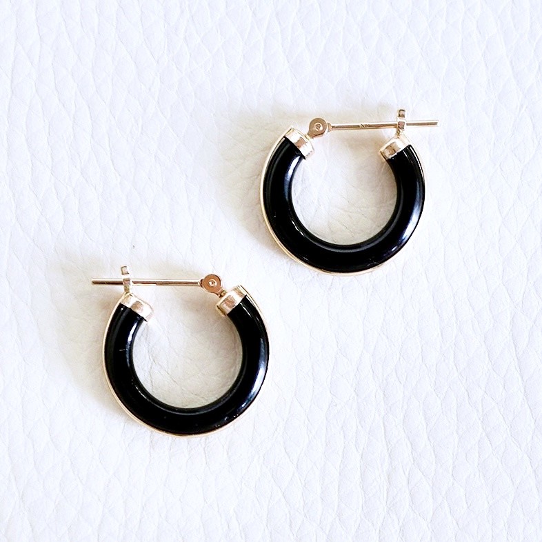 K10(10金)のオニキスのフープピアスです。