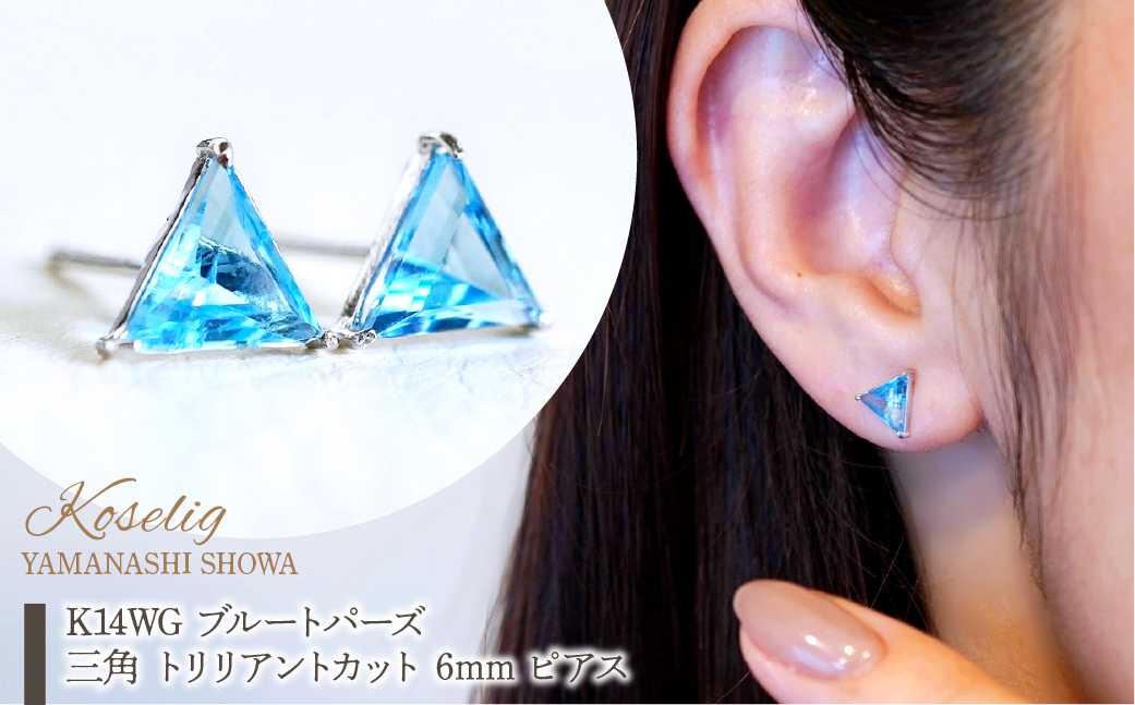 K14WG ホワイトゴールド ブルートパーズ 三角 トリリアントカット 6mm ピアス 保証書付 KO-0044 SWAD050
