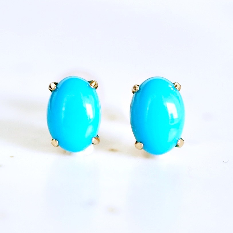 トルコ石の爽やかなブルーと柔らかいフォルムのオーバルのコンビネーションが美しいシンプルアイテムで耳元に彩りを加えてくれます。