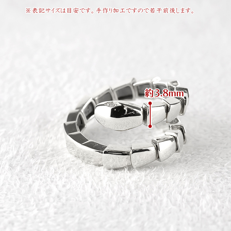 | 容量 | 材質 プラチナ950(品質を保証するpt950の刻印) ステンレスバネ内蔵 宝石 天然ダイヤモンド2石 0.015ct 大きさ リング幅 最大約 3.8ミリ 蛇頭 最大約 5ミリ |