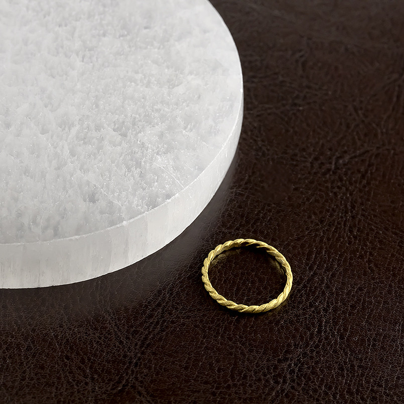 地金を鍛え職人がひとつひとつこだわりを持って編み込む華やかな純金リング