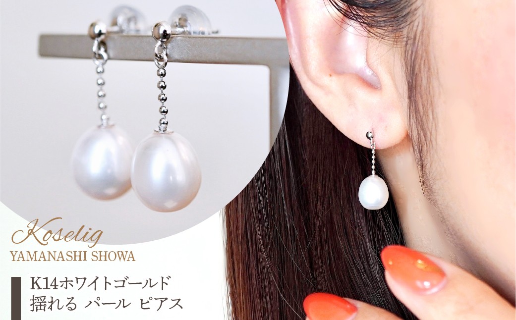 K14WG 14金 ホワイトゴールド 揺れる パール ピアス 保証書付 KO-0060 SWAD090
