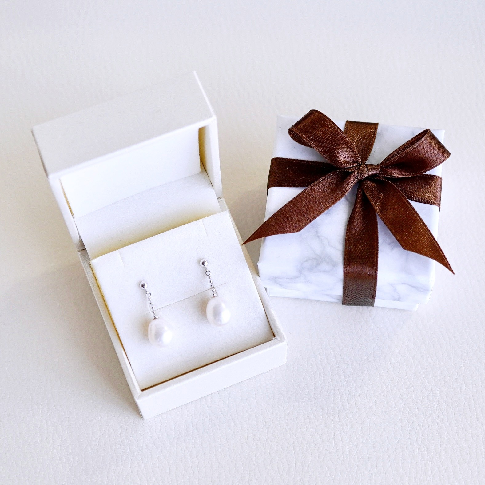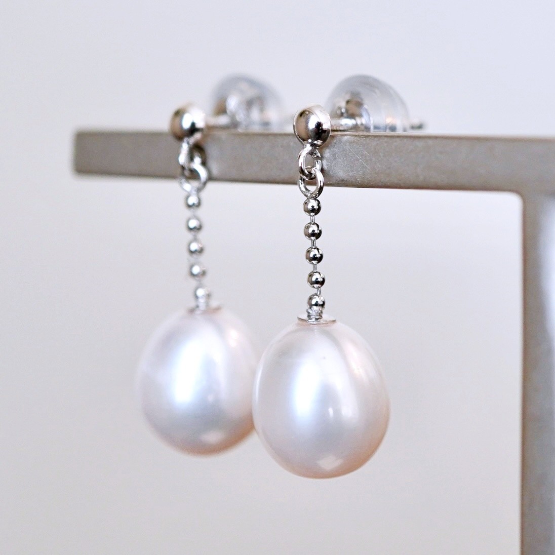 | 容量 | ピアス 1ペア(2個) 素材:K14WG(14金) ホワイトゴールド 全体のサイズ:縦約20.0mm 横7.5mm パールのサイズ:縦約9.0mm 横7.5mm ポスト:0.65x10mm シリコンキャッチ ジュエリーケース(リボン付) 保証書付(カード型) |