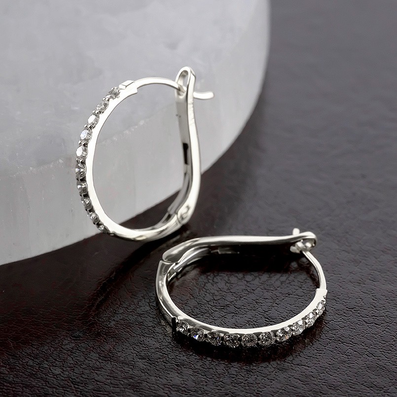 輝くダイヤモンドが美しく連なる、洗練されたフープピアス