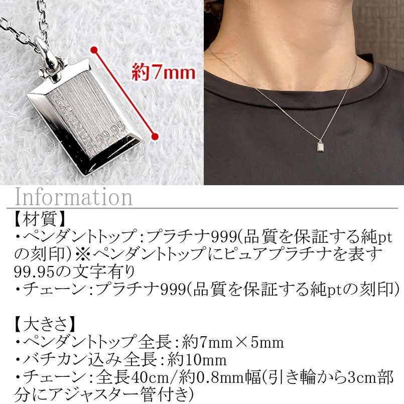 ネックレス 純プラチナ ペンダントトップ レディース インゴット型 プラチナ pt999 チェーン 金属アレルギー 対応 プレート 小さめ スクエア 地金 ジュエリー シンプル 人気 普段 使い 250530mro200p999n SWAA351