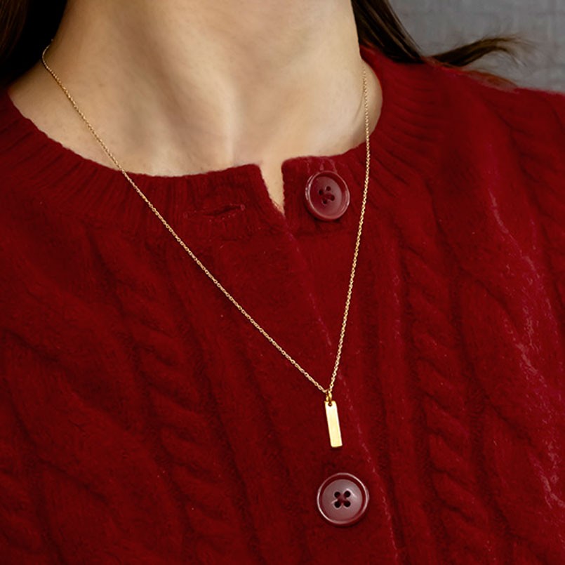 シンプルなバーに仕上げた地金ネックレス