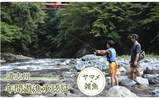 道志川年間遊漁承認証(2026年 ヤマメ・雑魚) *道志川釣りマップ付き ※2026年2月上旬頃~7月上旬に順次発送予定 ふるさと納税 遊漁承認証 釣り つり ヤマメ 山女魚 地図 マップ 山梨県 道志村 送料無料 DSE001