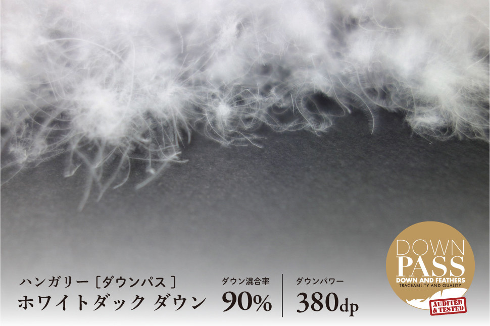 詰め物は富士新幸が厳選、直輸入した羽毛、ハンガリーホワイトダックダウン。