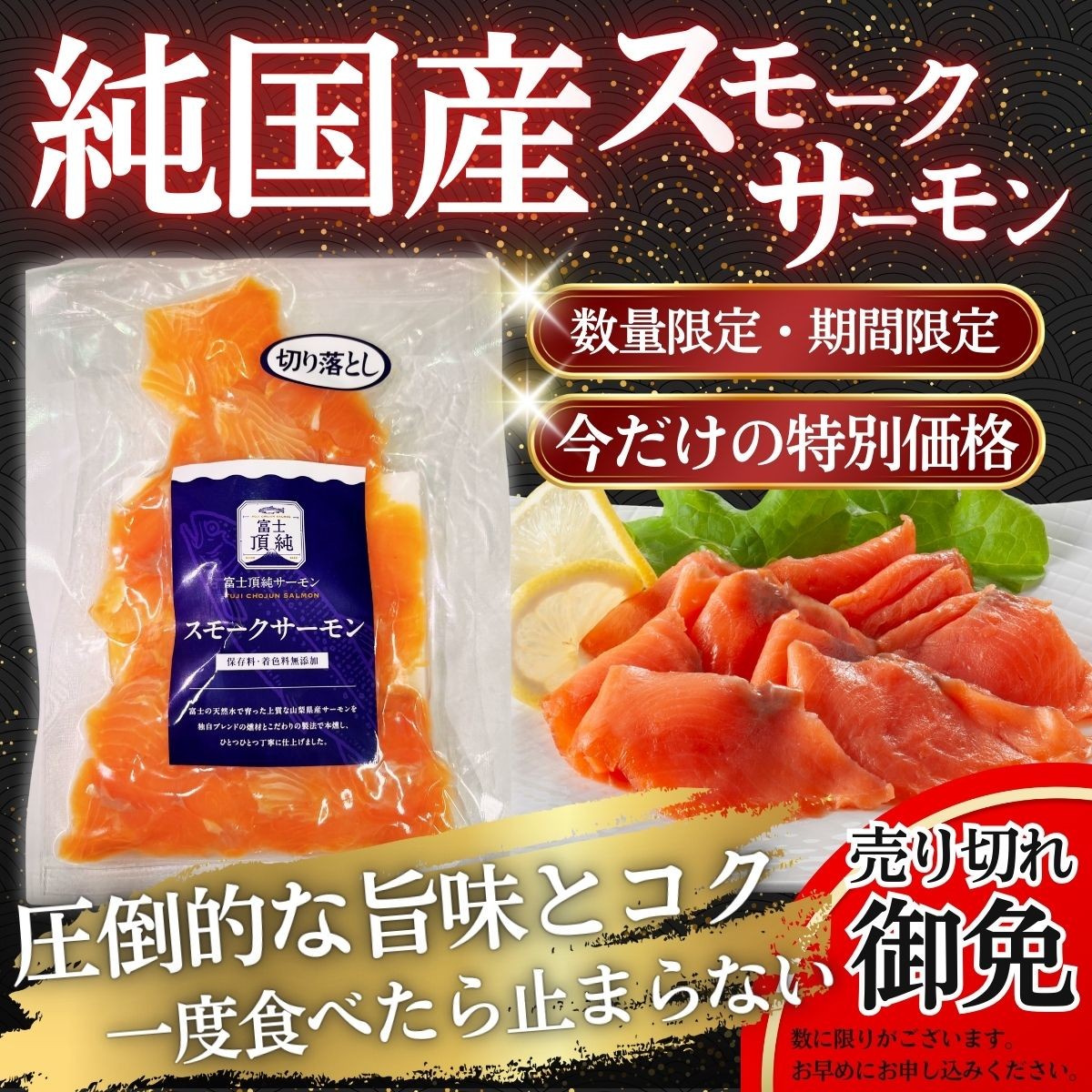 地域の生産者応援の品 数量・期間限定!富士の天然水を使用し養殖した安心安全でおいしいサーモン 富士頂純サーモン スモークサーモン 切り落とし 選べる 内容量 訳あり 冷凍 賞味期限 2026年3月31日 富士山麓のきれいな天然水で養殖された安心安全なサーモン 完全無投薬 ワクチンフリー アニサキスフリー サステナブル 鮭 切り身 着色料 保存料 無添加 燻製 お歳暮 ギフト 送料無料 【n0666_nes】