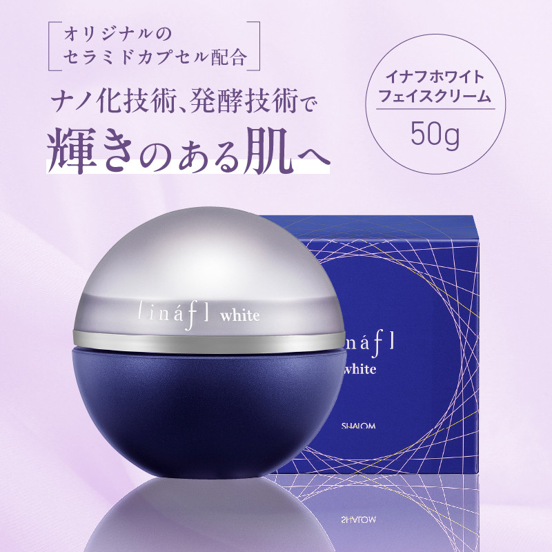 | 容量 | 【内容】 フェイスクリーム ・イナフホワイト 50g ・イナフリンクルT 20g 【原材料】 《イナフホワイト》 整肌成分:水、スフィンゴミエリン、グラブリジン、ペンチレングリコール 整肌成分:アスペルギルス/(コメ/コメヌカ)発酵液 《イナフリンクルT》 保湿成分:スフィンゴミエリン、ペンチレングリコール、水 |