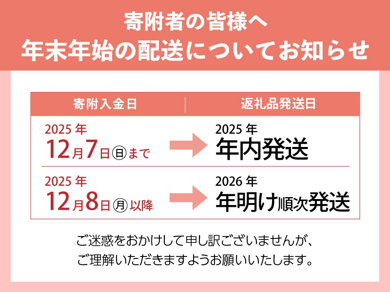 入金確認後、10日前後で発送予定。 (GW・年末年始は除く) ※沖縄県、離島へのお届けは出来かねます。 |