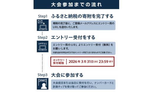 ・《1月中旬頃》に当サポート室よりエントリー用のURLを送付いたしますので、必ずエントリー(無料)をお願いいたします。返礼品のお申込みだけではエントリーが完了となりませんのでご注意ください。