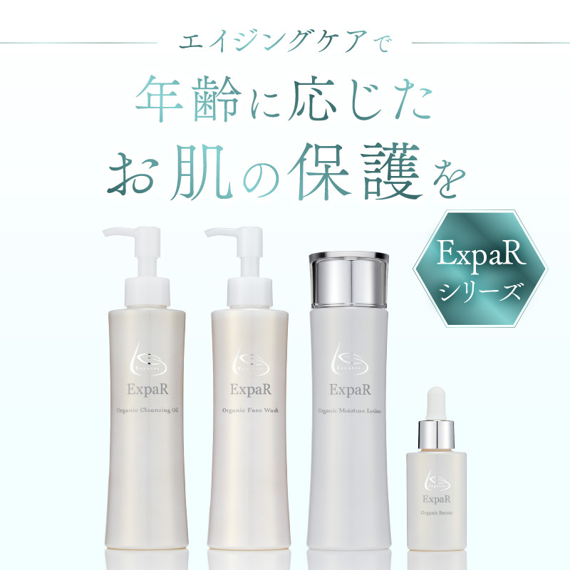 時間を止め、気にしないが続く素肌に ExpaR オーガニックモイスチャーローション(200ml)&セラム(30ml)