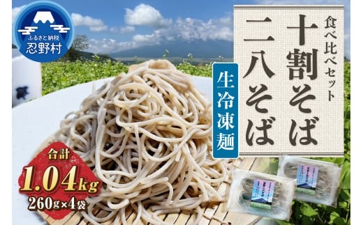生冷凍麺 十割そば 二八そば 食べ比べセット 忍野村産蕎麦粉 長野県産小麦粉 風味豊 食感 無塩 無添加 農薬不使用 蕎麦 麺類 お取り寄せ ざるそばもおすすめ 健康志向 4袋 贈答 ギフト 国産 山梨県産 富士北麓山梨県産 送料無料 忍野村 山梨県