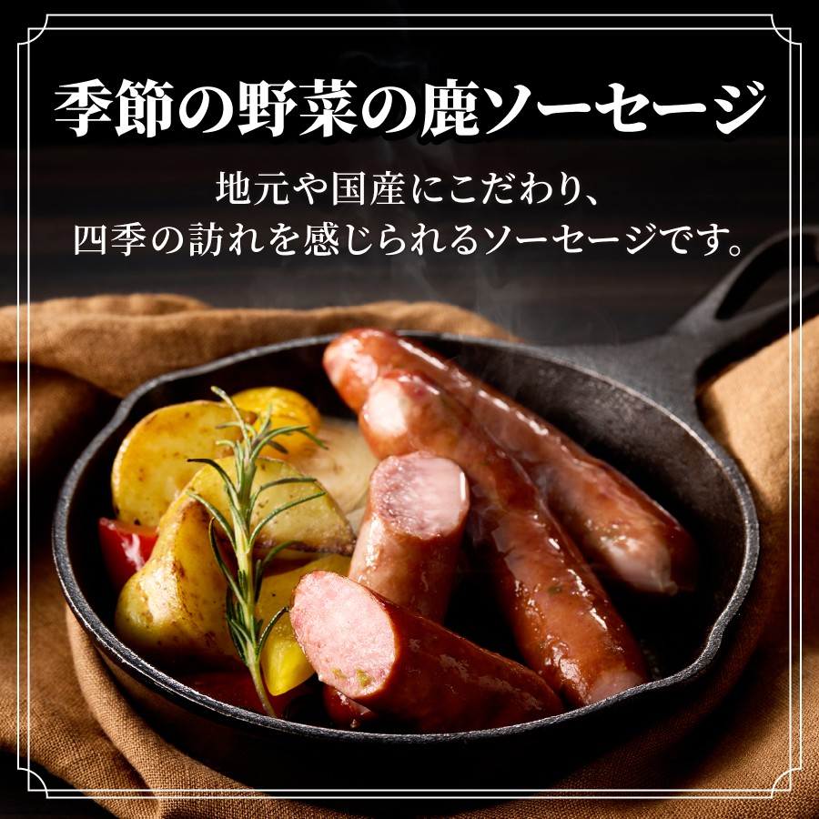 当店の商品に使用している鹿肉は、シェフが捌き、加工するところまでを一貫して行っているためジビエ特有の臭みや硬さがなく、高タンパク・低脂肪で鉄分も豊富。その鹿肉を贅沢に使用し、熟練の技で一本一本丁寧に作り上げたソーセージは、鹿肉本来の旨味を最大限に引き出すため、厳選したスパイスとハーブを絶妙なバランスで配合。ジューシーで深い味わいに仕上げています。