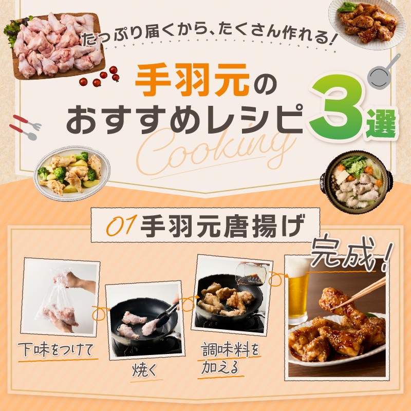手羽元がたっぷり2kg入った商品を3ヶ月定期便にてお届けします。