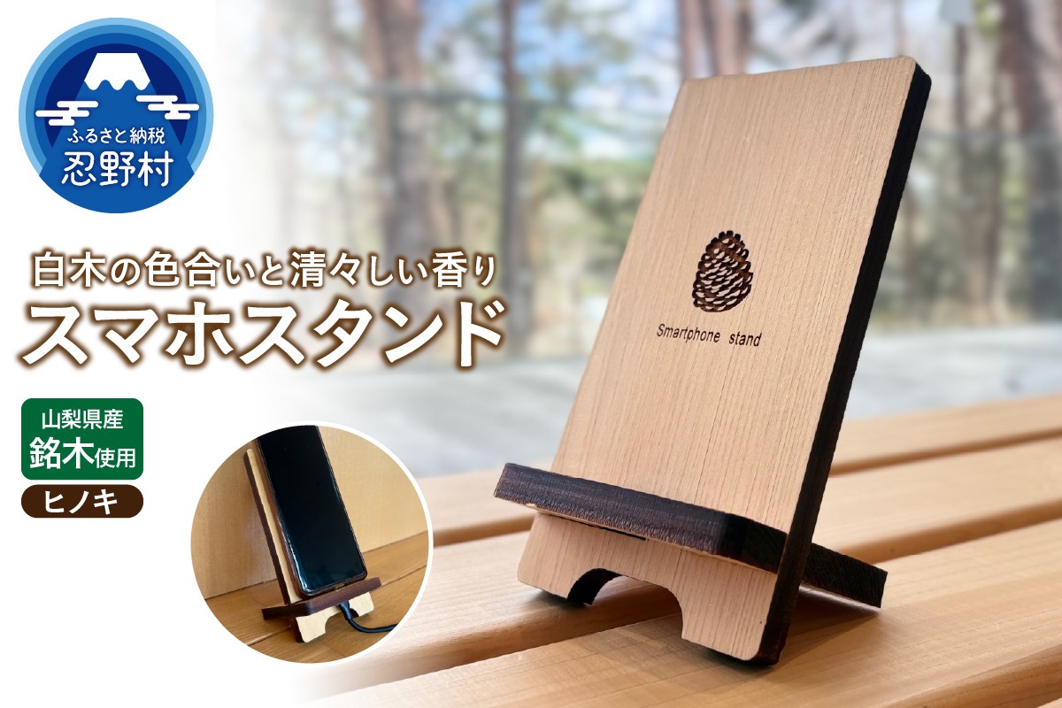 スマートフォンスタンド スマホスタンド スタンド型 ヒノキ 檜 ひのき ぬくもり おしゃれ 恩賜林 山梨県 忍野村