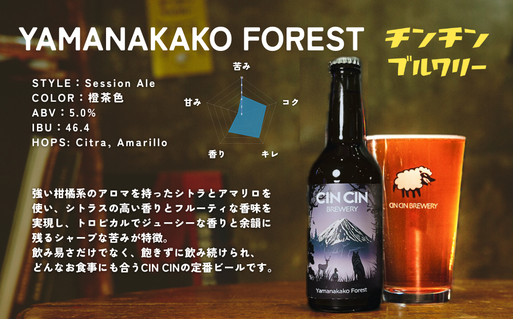【Yamanakako Forest】柑橘系ホップの爽やかな香りと軽快な飲み口が特徴のセッションエール