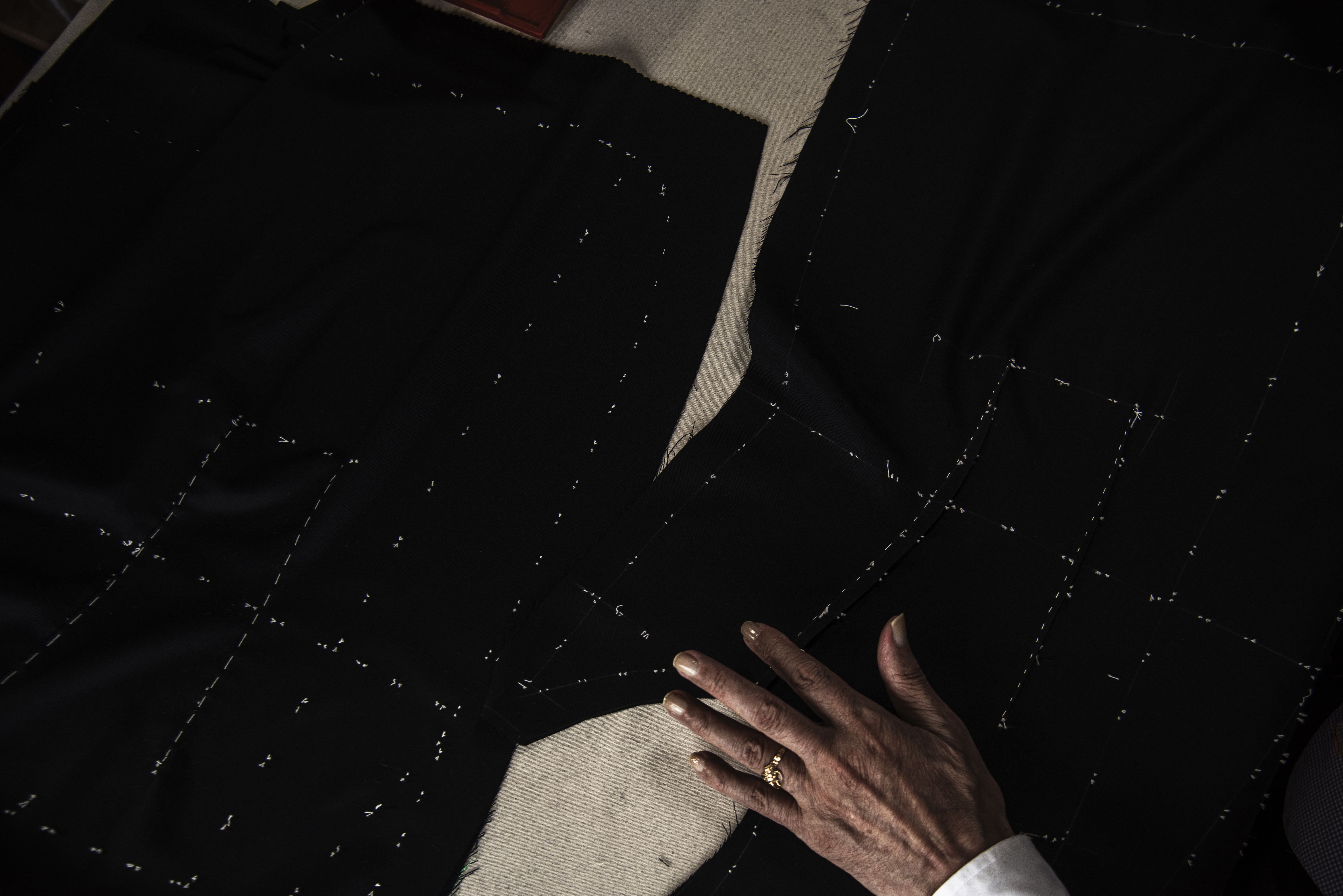 縫製キャリア65年の日本最高峰の技術を持つ巨匠のもとで、若手テーラーが、日々ビスポークの技術を継承しながら、お客様にとって美しく着やすい洋服を仕立てています。