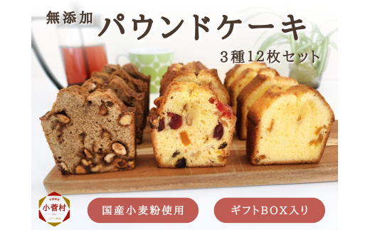 無添加パウンドケーキ 3種12枚セット(冷凍)源流パン工房
