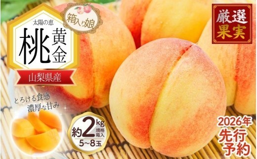 朝もぎ直送「黄金桃」5~8玉 約2kg規格箱入り【高機能共選機使…