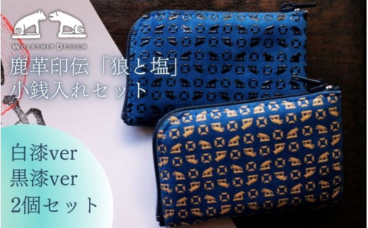 NEW オリジナル印伝「狼と塩」小銭入れ黒漆 白漆 2個セット 甲州印…