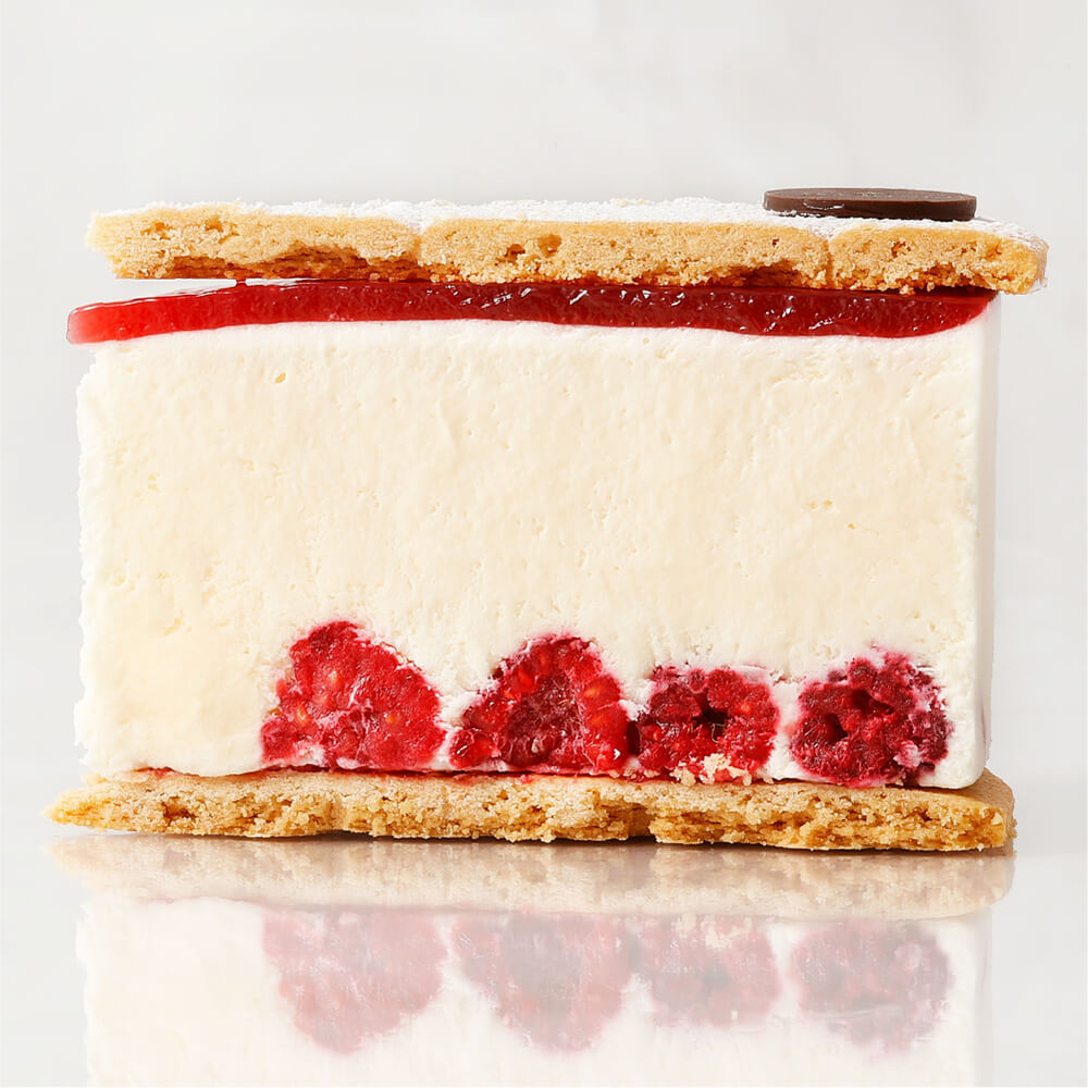 仏ヴァローナ社のチョコレートを贅沢に使用。ムースとスポンジと木苺のバランスが絶妙