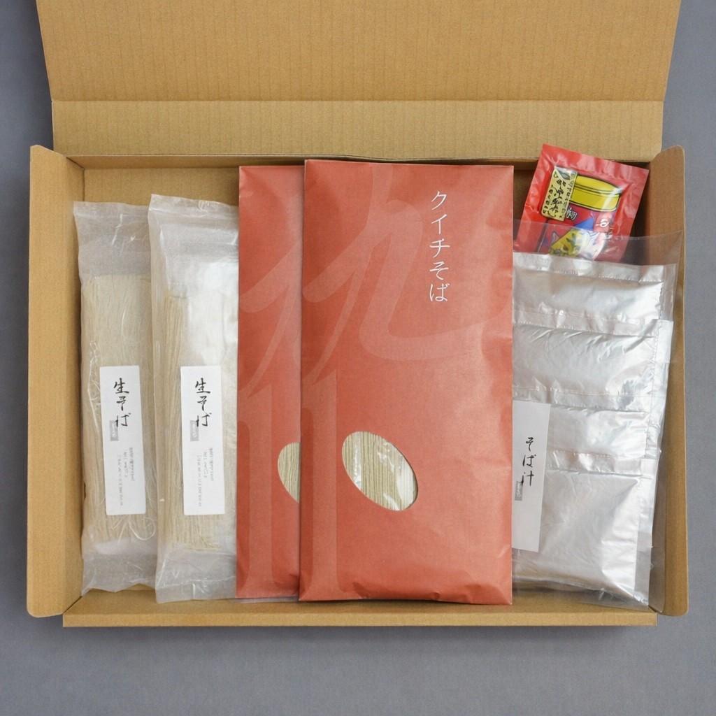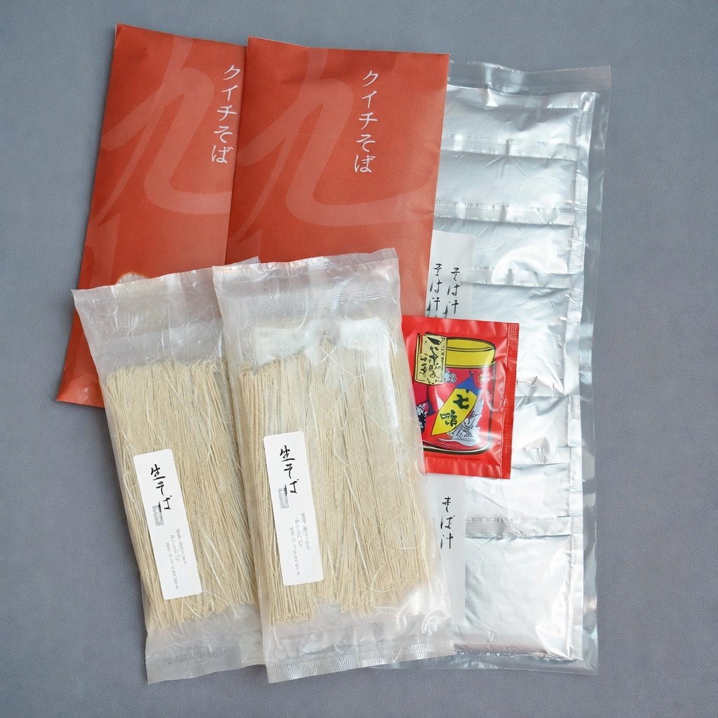 | 容量 | クイチそば:(120g×2)×2 生そば(半生タイプ):(110g×2)×2 そばつゆ:(80g×4)×2 七味唐辛子:8g×1 |