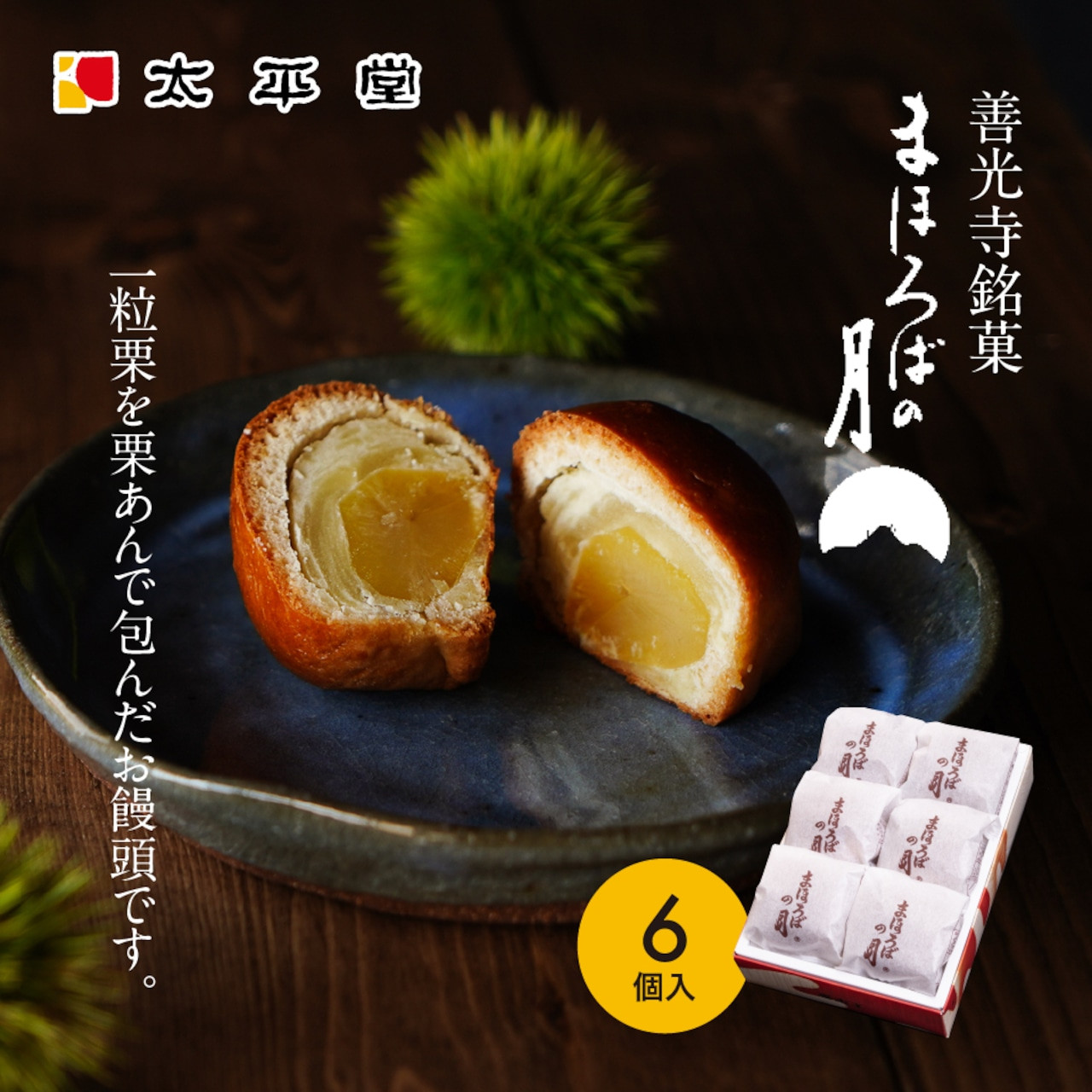栗1粒まるごと栗餡ぎっしり J0925 善光寺銘菓 まほろばの月 6個入(太平堂)