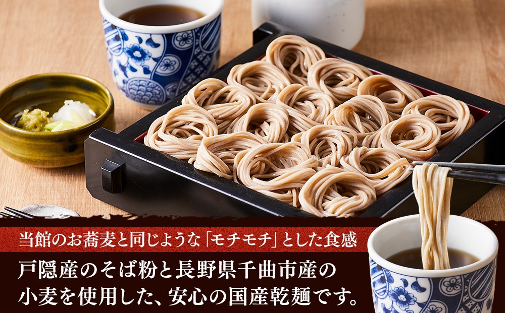 その「戸隠蕎麦」を戸隠神社神職である戸隠神社宿坊・いろりの蕎麦処築山館の当主が毎朝手打ちにて作るお蕎麦に味・食感をより近づけた「モチモチ感とのどごし感」が楽しめる乾麺になります。